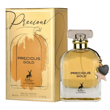 Precious Gold parfum arabesc feminin creat de catre Maison Alhambra. Astazi, apartinand impreuna cu RAVE, ASDAAF, AL RAHEEB companiei LATTAFA PERFUMES, una dintre cele mai prestigioase companii producatoare de parfumuri si produse cosmetice din Emiratele Arabe Unite.