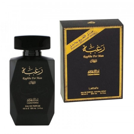 Descopera parfumul oriental arabesc „Raghba for Men” intr-o prezentare unica, sticluta de 100 ml pentru Barbati produs de marele producator din Dubai: Lattafa Perfumes.